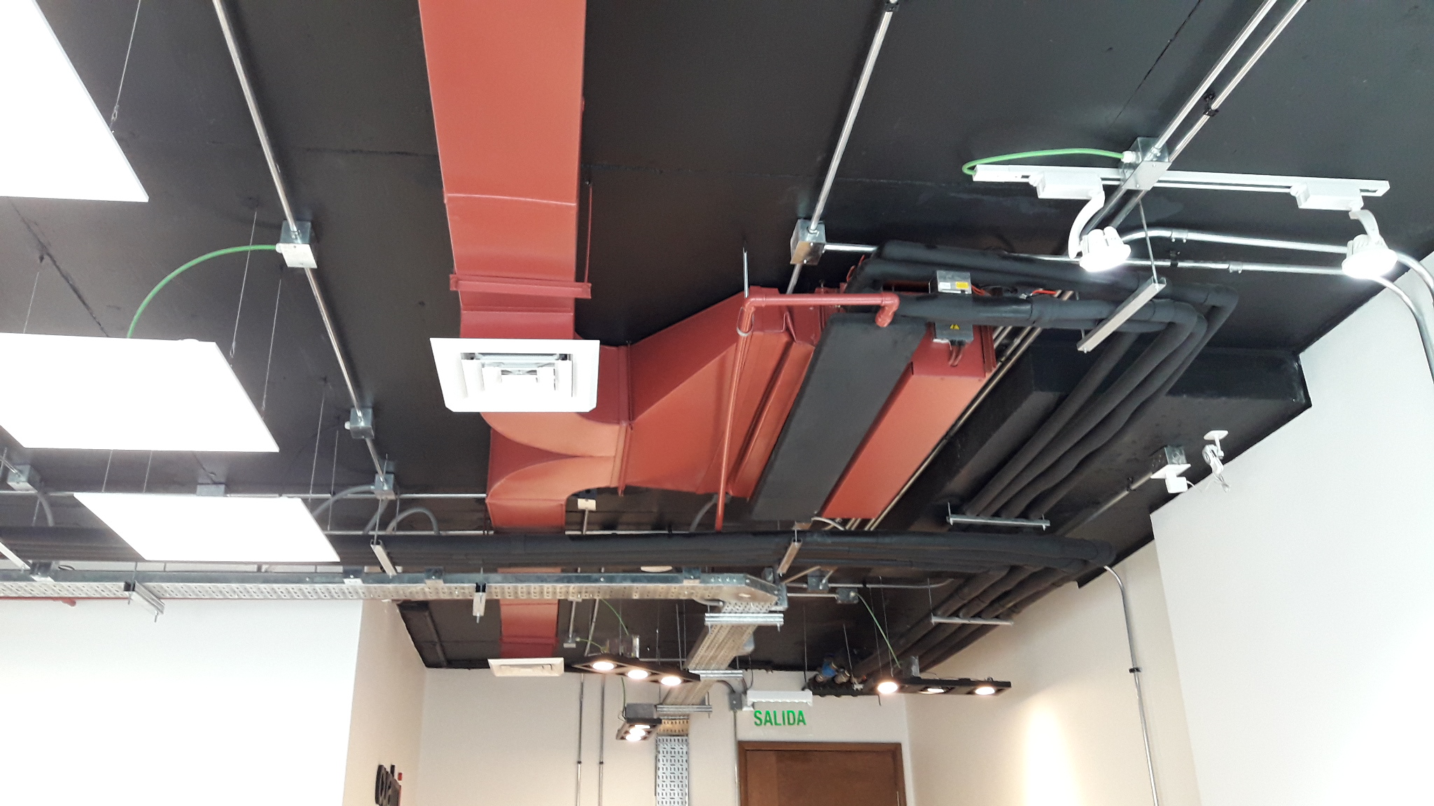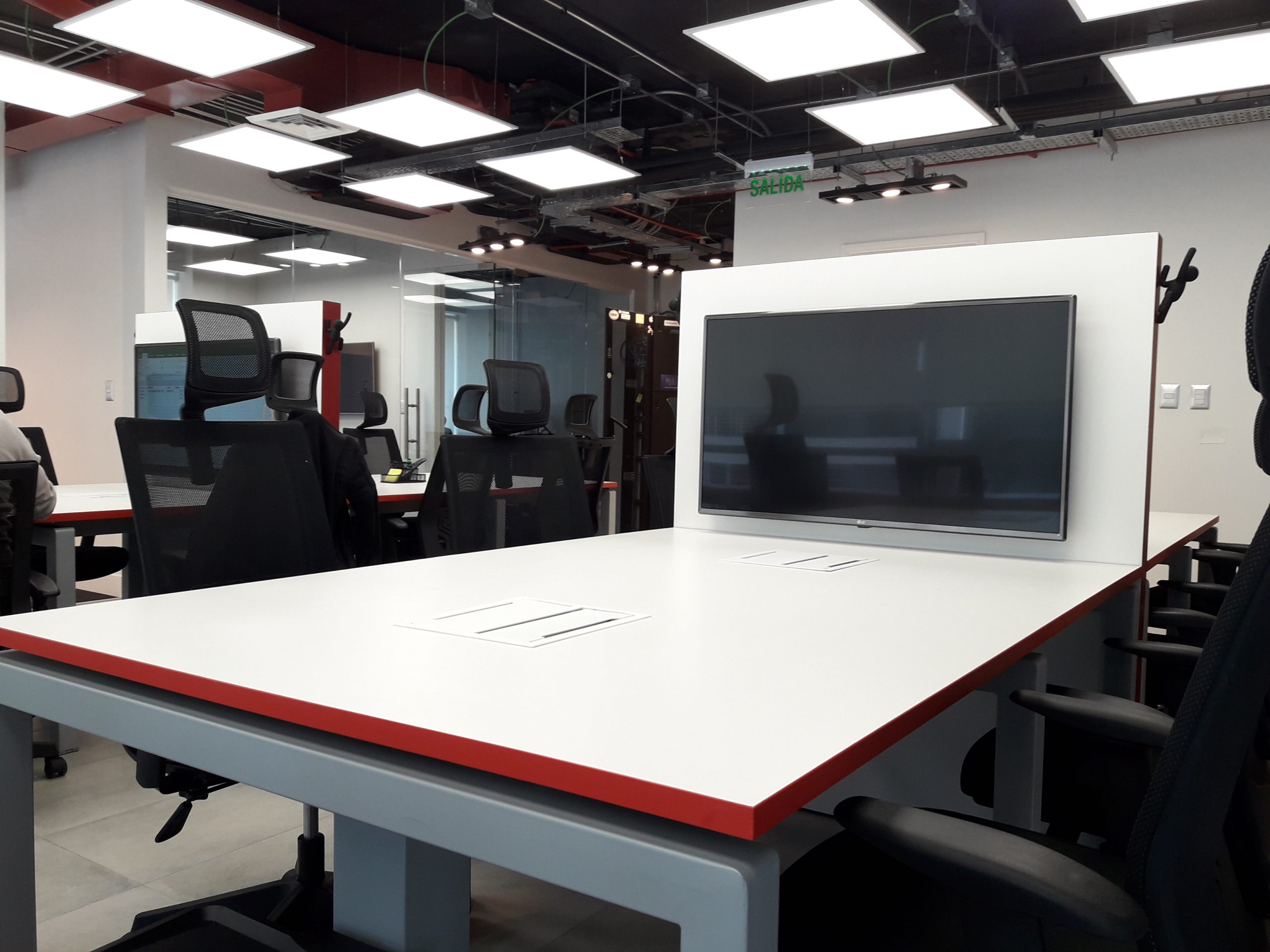 A nivel estético, se buscó mantener la losa a la vista, pintada, con un mix de iluminación interesante. Esto para calzar mejor con el perfil joven de la empresa, y a su vez para que se sintiera un espacio más holgado, toda vez que la carga de ocupación de la oficina era significativa.
