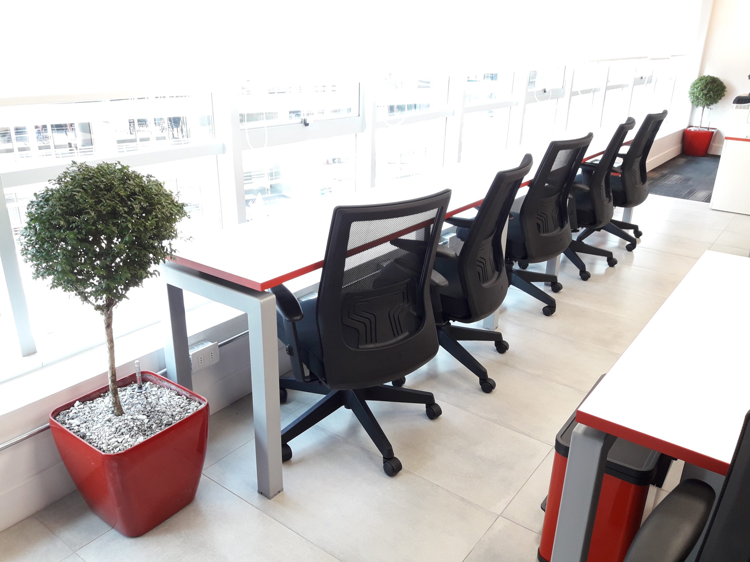 El resto del espacio, de utilizó en forma óptima para permitir puestos de trabajo para 10 personas, un lineal de hot desking, 2 espacios de reunión abiertos, recepcionista, lockers y un espacio en esquina de reunión informal y briefing, con una gran TV