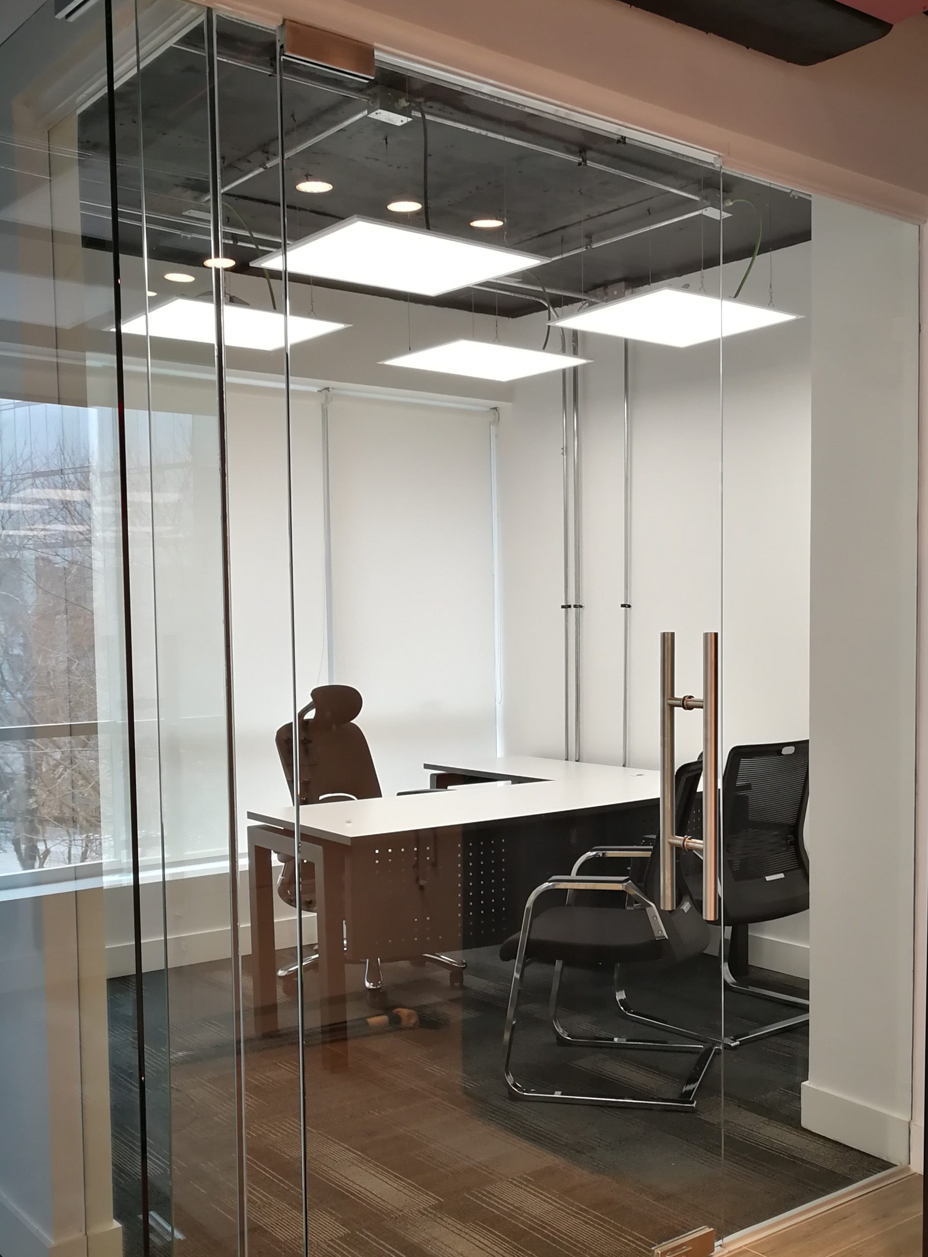 Realizamos la habilitación de esta pequeña planta libre bruta, de 112 m2, para la empresa de tecnologías Cuatro i. Un diseño innovador y de espacios abiertos, con privados para los 2 socios.