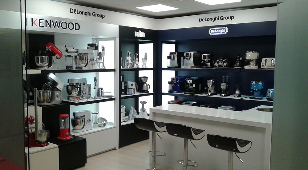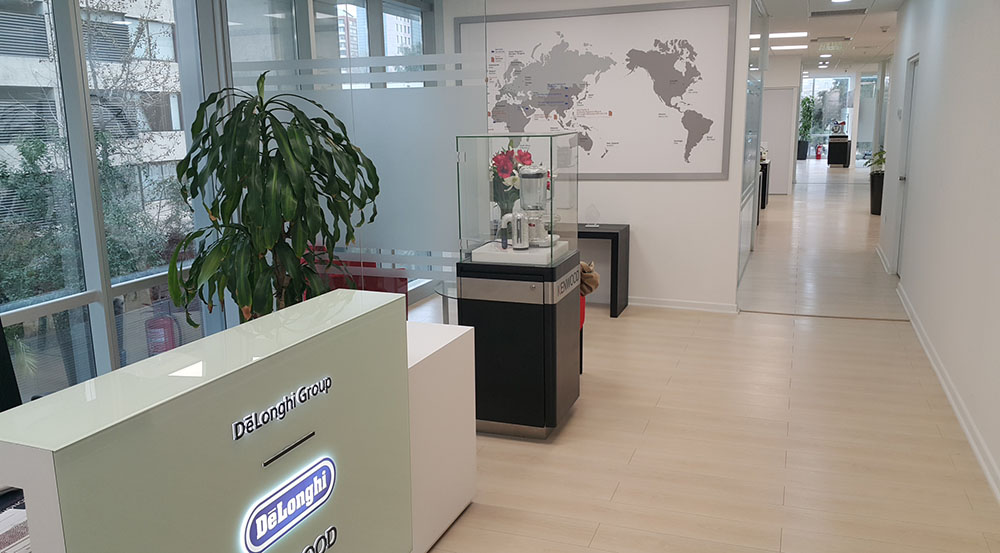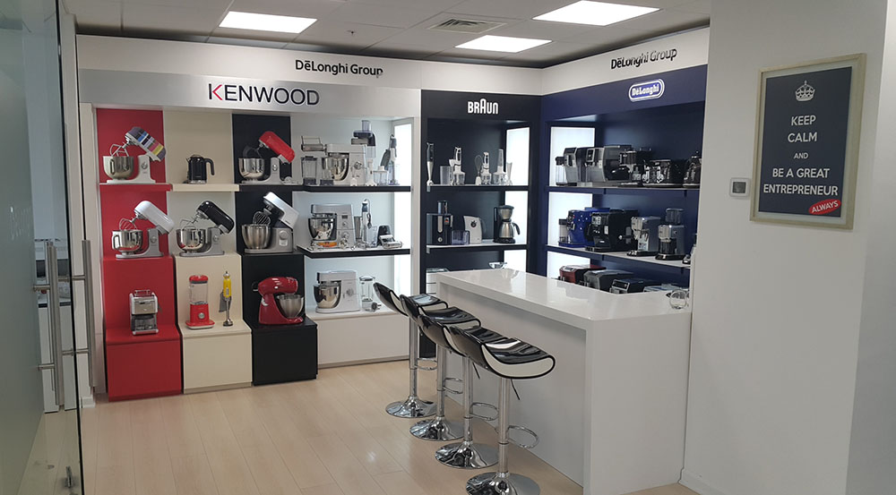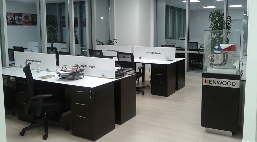 De Longhi Group, representante de las marcas De Longhi, Kenwood y Braun, nos encargó desarrollar un proyecto para sus nuevas oficinas, con especial atención a la exhibición de sus productos. Si bien era una oficina comercial, se requería el tener un adecuado sector de exhibición y prueba de estos. A nivel constructivo, es importante destacar que las materialidades de piso laminado y cielo americano son de un estándar sencillo, lo que permitió invertir en todo aquello relacionado con las marcas y sus productos, sin subir el costo de la ejecución innecesariamente. El resultado entonces es una oficina luminosa, moderna, costo eficiente y con valor agregado en los aspectos significativos. Todo el diseño industrial y fabricación de mobiliario fue realizado por Santiago Staging.