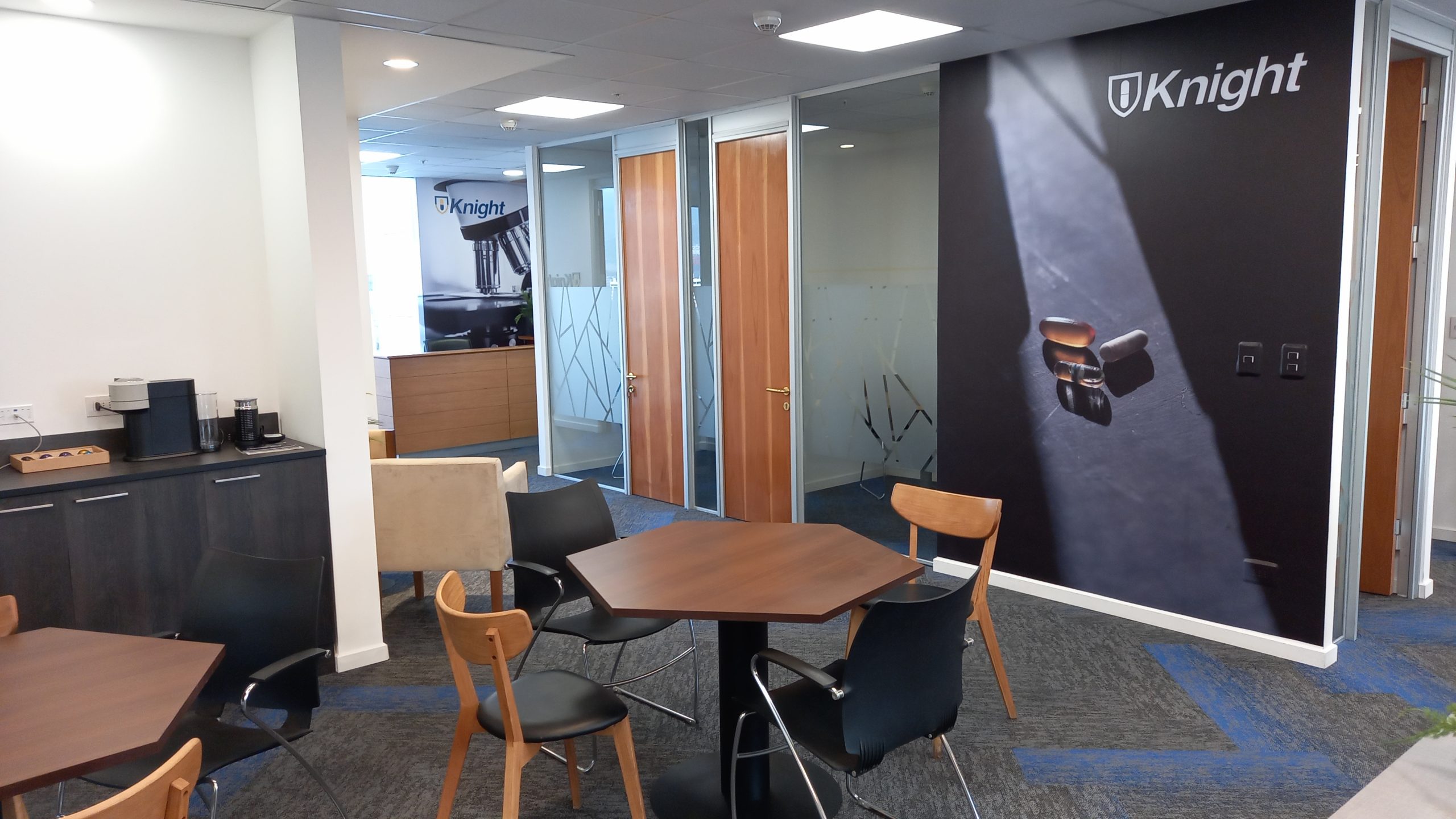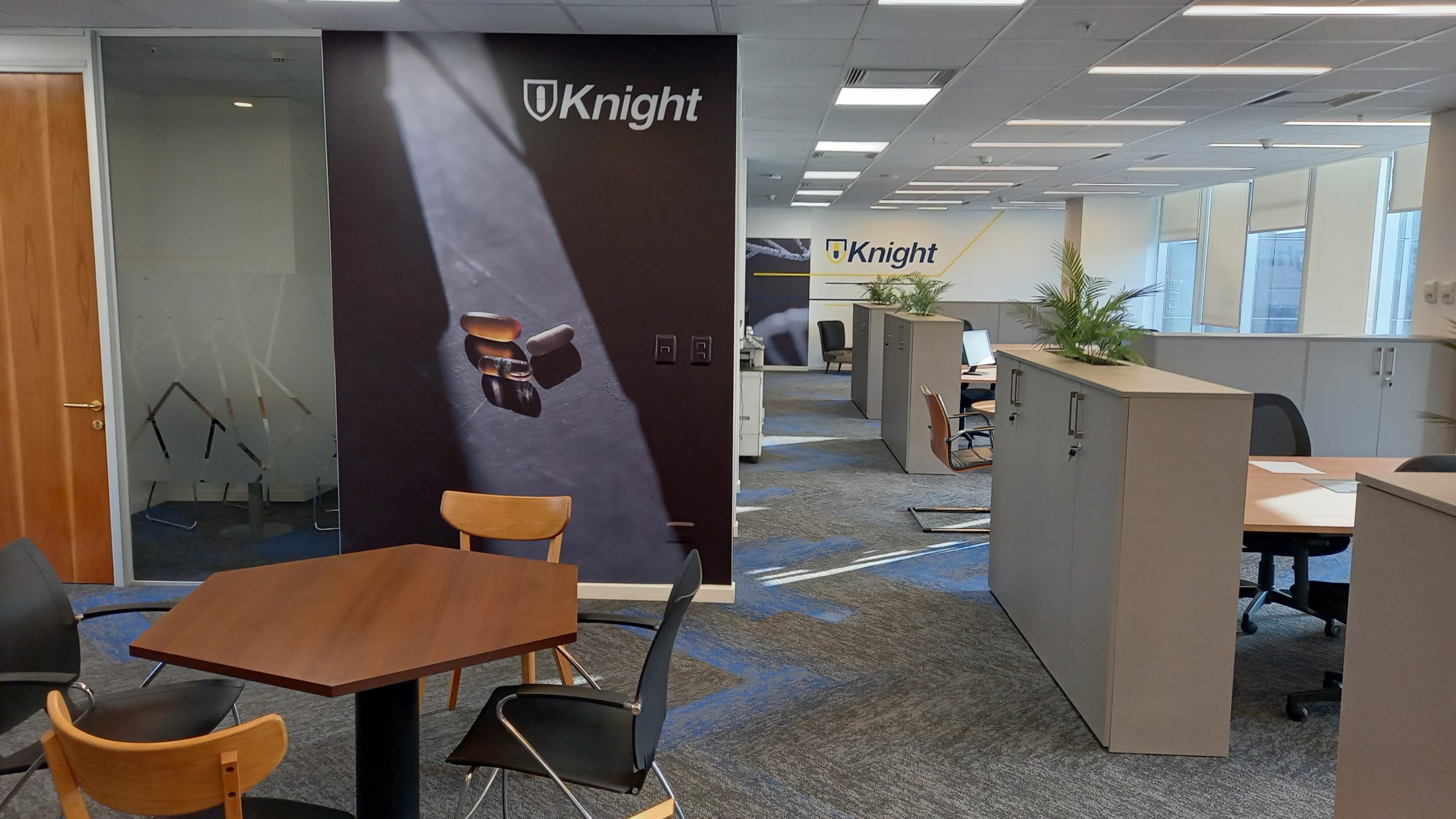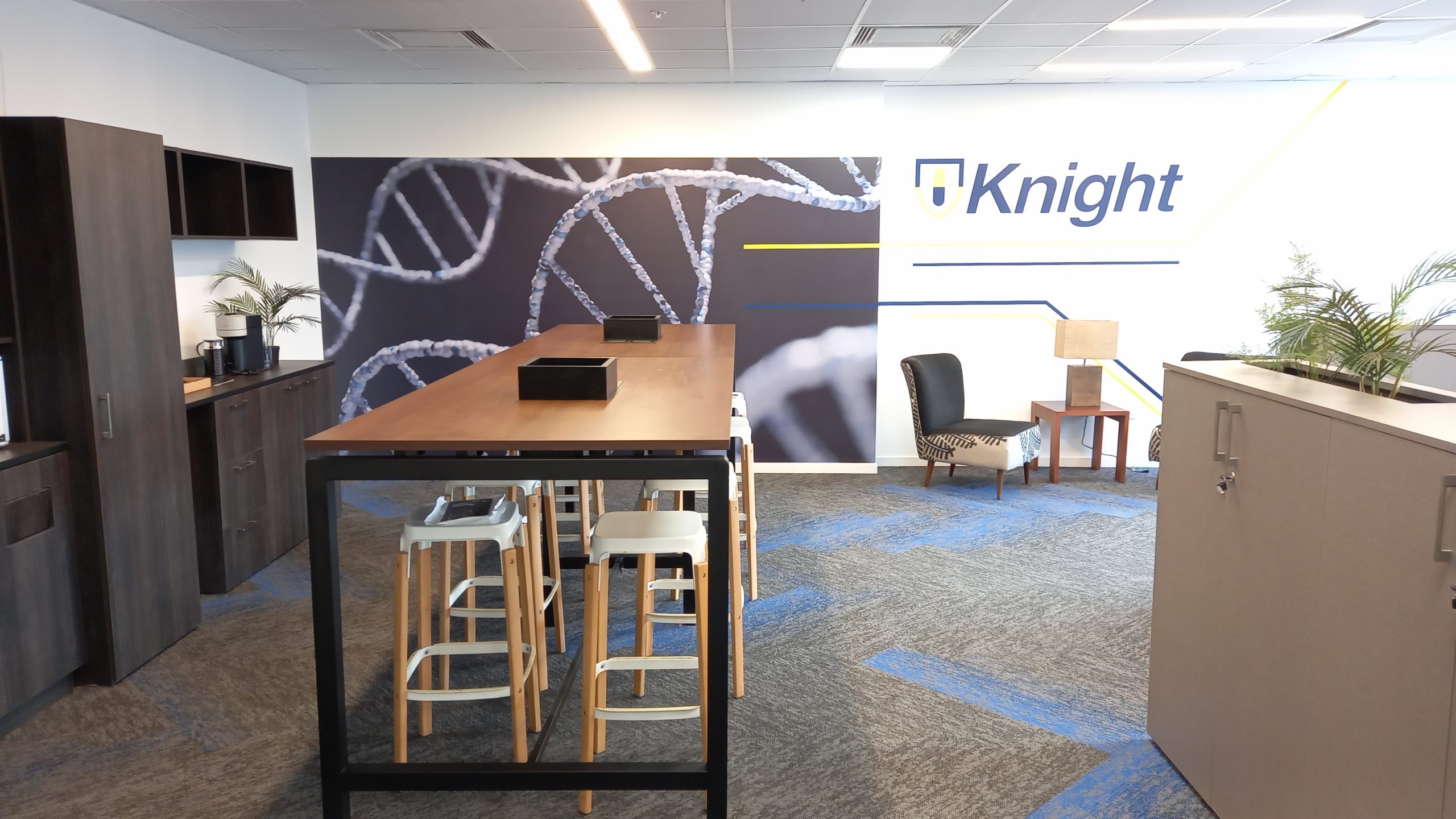 Knight Therapeutics es un Laboratorio con sede en Montreal. Nos entregó el desafio de convertir una oficina con 15 años de uso, tremendamente cerrada y anticuada, en algo moderno, luminoso, que fomentara la interacción. Como siempre, buscamos aprovechar recintos que funcionaban, como la sala de reuniones prinicipal, los privados y la zonas húmedas. y diseñar en torno a estos. Asi, se creó un open plan con estaciones de trabajo amplias, acceso a zonas de descanso e interacción, y pequeñas salas para reunión o atender videollamadas, necesidades críticas para oficinas modernas.