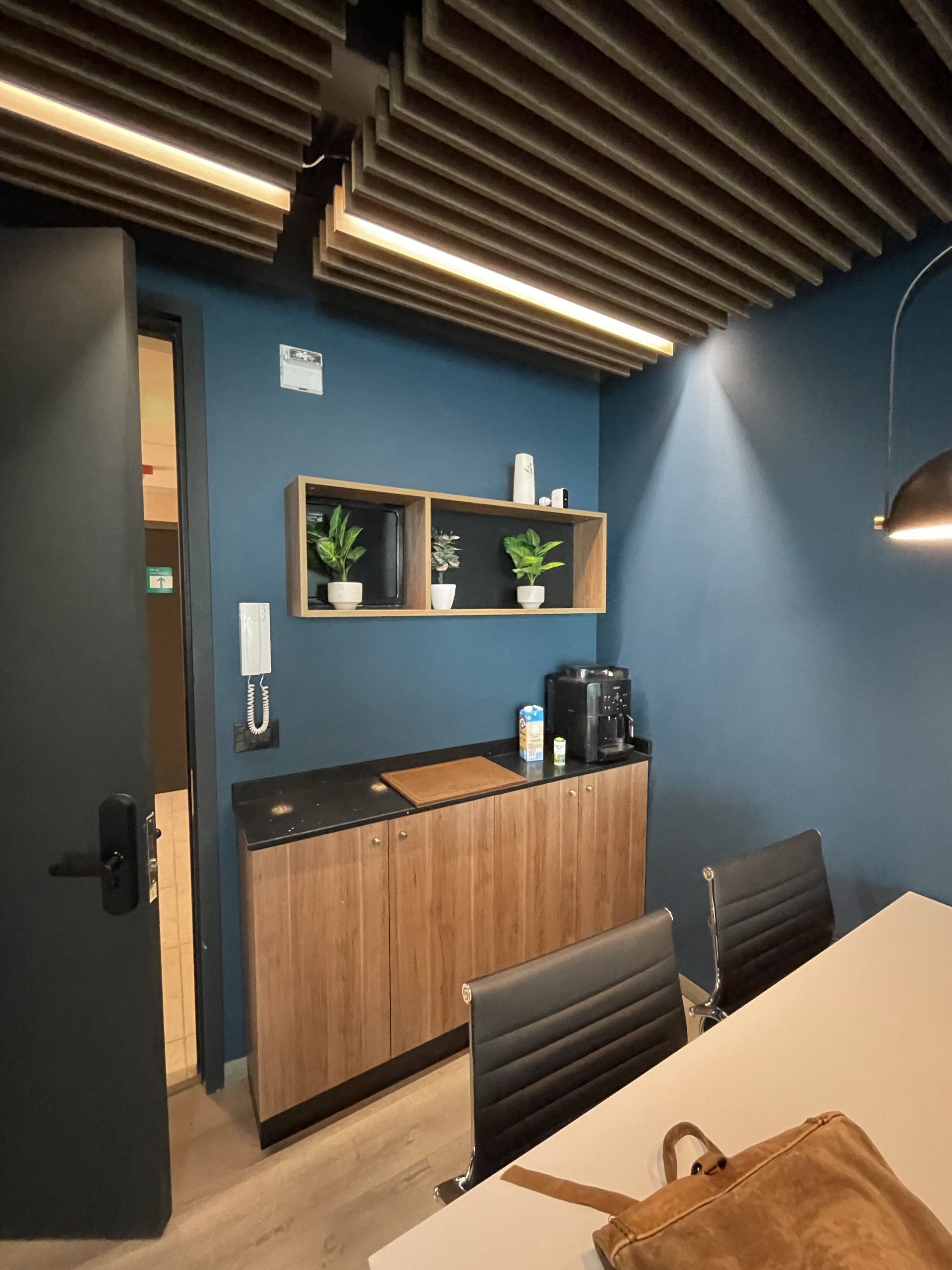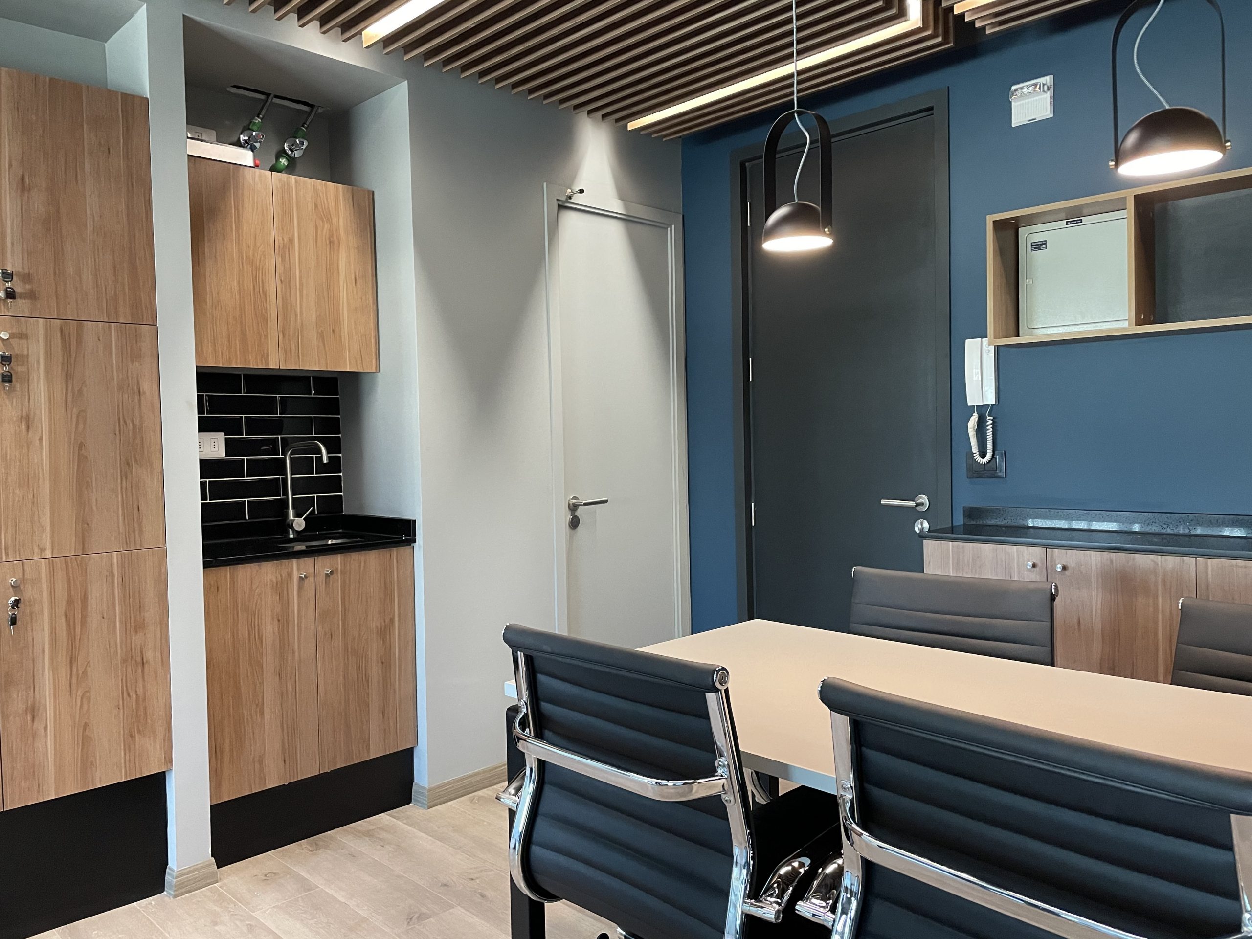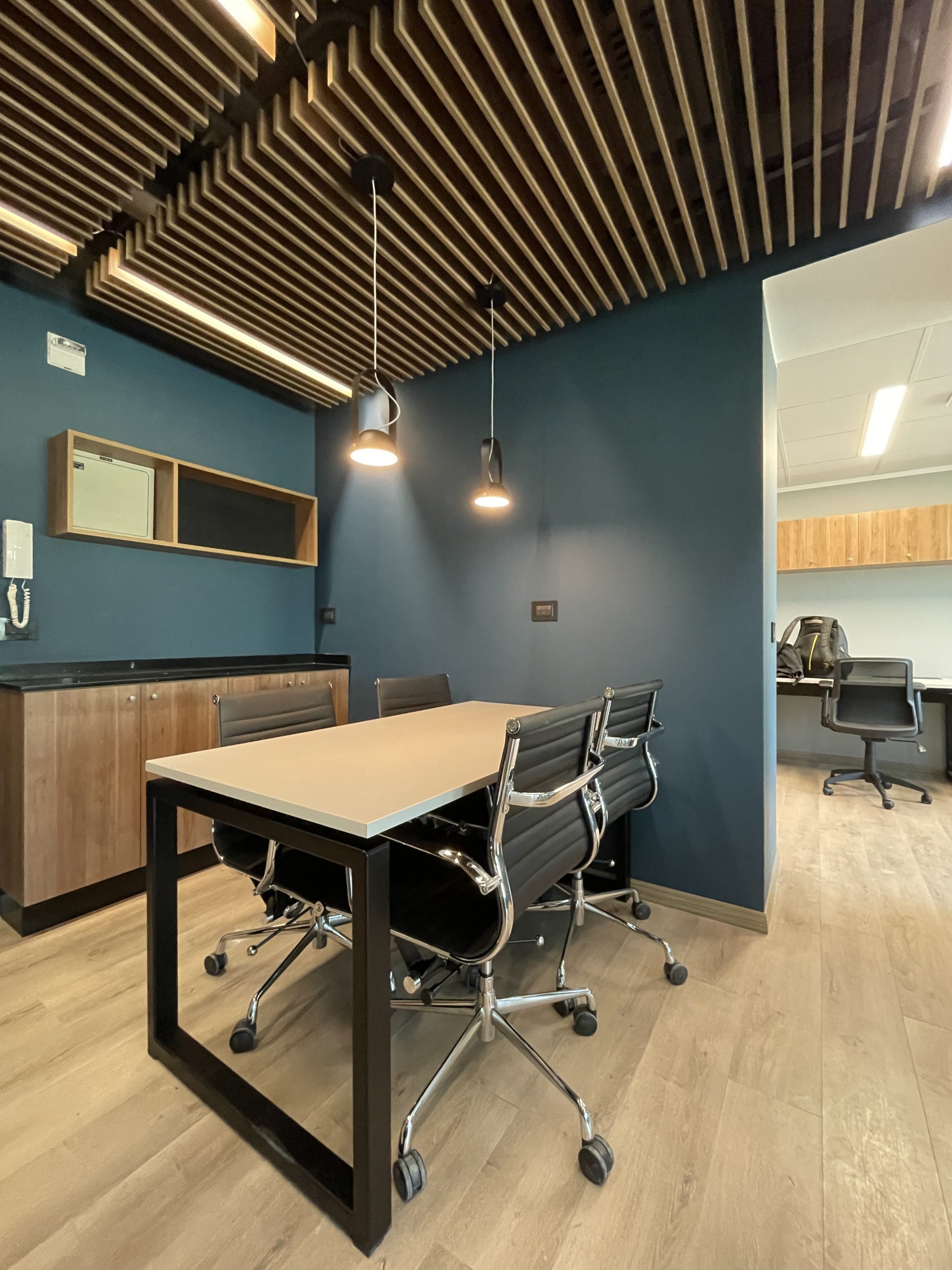 Para M2B se ejecutó una habilitación de planta libre 75m2. Se eficientizó el espacio con un sector de trabajo y una sala de reuniones principal. En el acceso, se dió el desafío de generar otra sala de trabajo, con un coffee corner, almacenamiento y lockers para el personal. Se le dió valor al proyecto con el uso de palijjale en sector acceso, combinandolo con tonos madera en el mobiliario e iluminación atractiva.