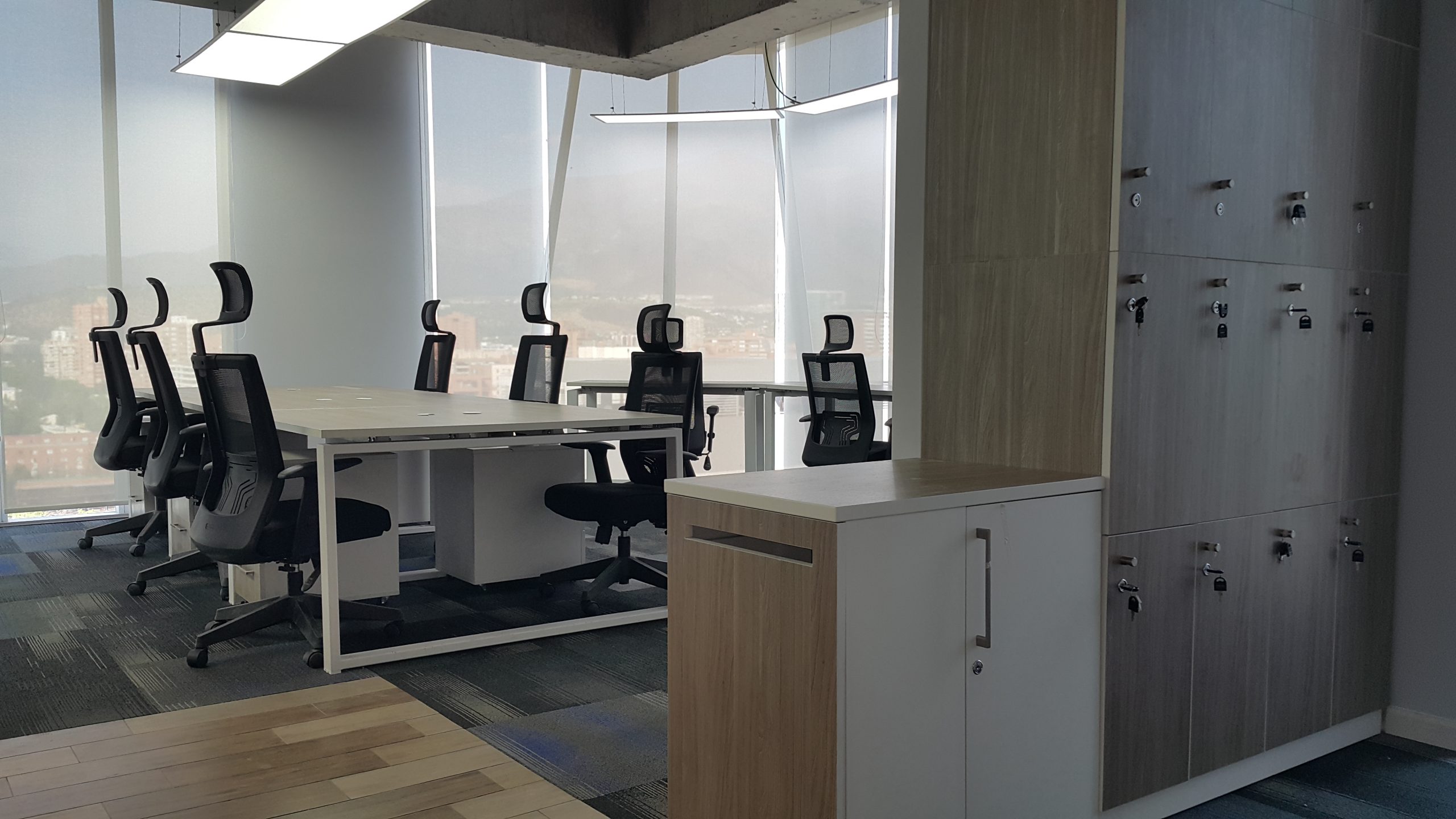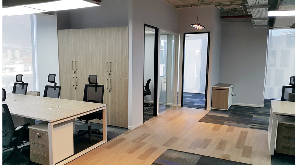MZZO, empresa Chilena de gran crecimiento en servicios de diseño e ingeniería de Software, necesitaba una solución para su planta en 2 niveles. Debía mantener puestos de trabajos en un contexto abierto para una importante capacidad de desarrolladores, así como espacios para Gerencias y salas de reunión. A nivel de look & feel, se pretendía transmitir una imagen de modernidad y fábrica de ideas, concibiéndose como elemento importante los cielos abiertos. Se acompañó de mobiliario combinando fierro blanco y formicas, aportando cierta calidez con tonos de madera clara. La iluminación implementada fue 100% LED, en variedad de modelos y temperaturas de color, acorde a las mejores prácticas y lo esperable de una empresa tecnológica.