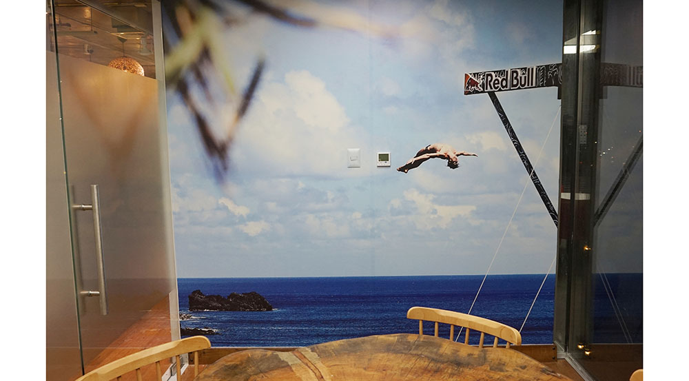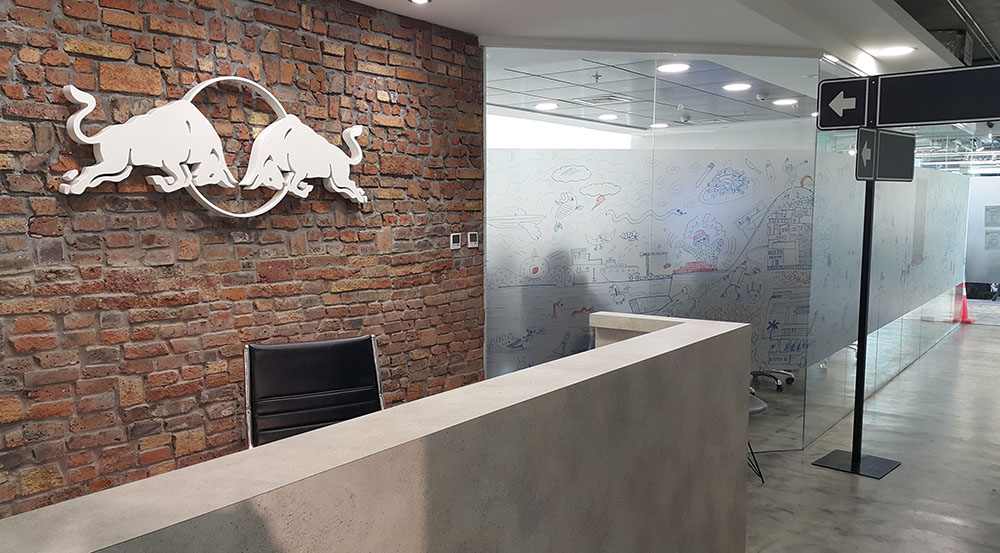 Las oficinas de Redbull representan y evocan Chile de Norte a Sur. Entre ellas se entrelazan distintas actividades e hitos de la marca, principalmente en nuestro territorio. La planta tiene un open plan donde trabaja todo el Staff, ambientado e inspirado en el norte. Destaca en este la aplicación de un Micropiso imitando arenas. En el ala de las salas de reuniones, se encuentran varias de estas con alusiones a ValparaÃso, Isla de Pascua, el evento Stratos de salto desde la estratosfera y una sala de reuniones como estudio de música. Se genera un gran sector de interacción informal en zona inspirada en sur de Chile, donde prevalecen las maderas en revestimientos y se generan entretenidos espacios de juego.