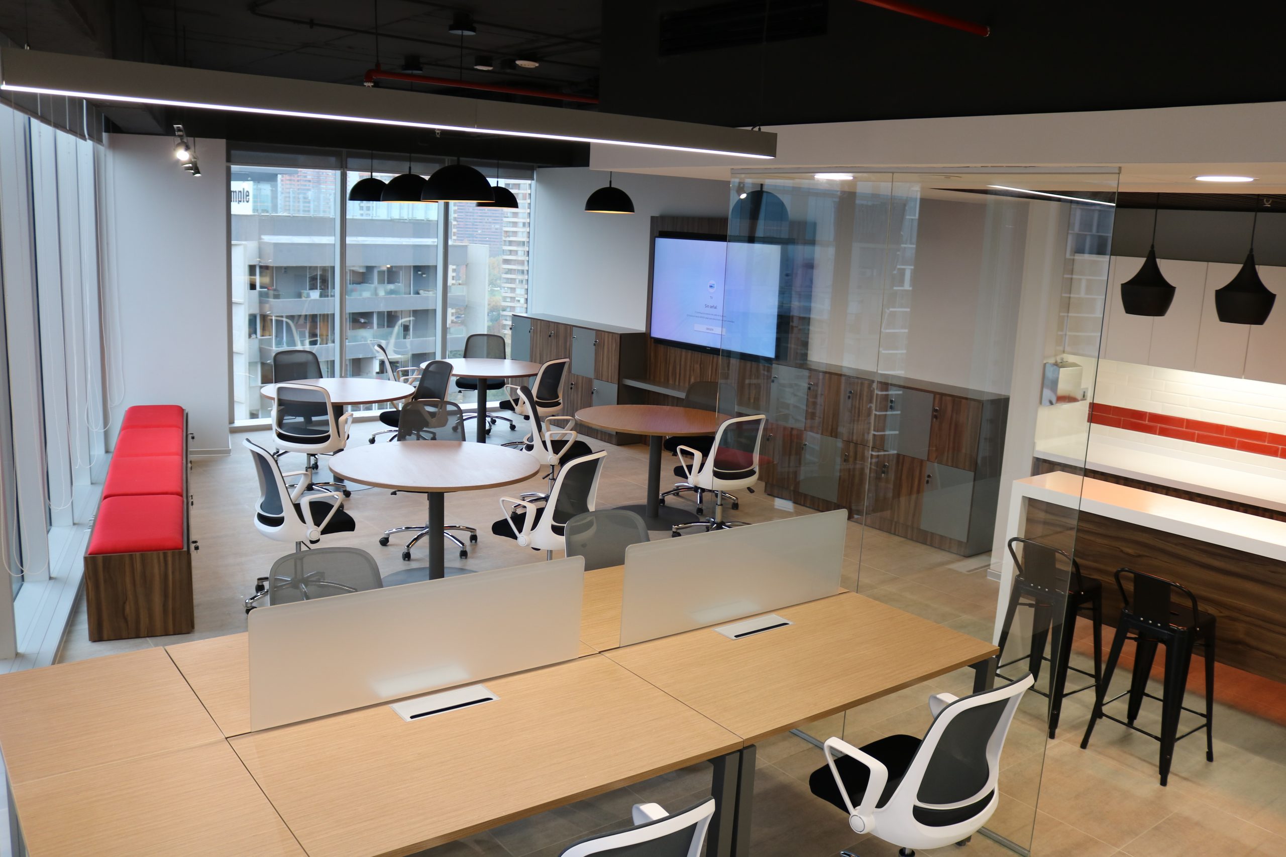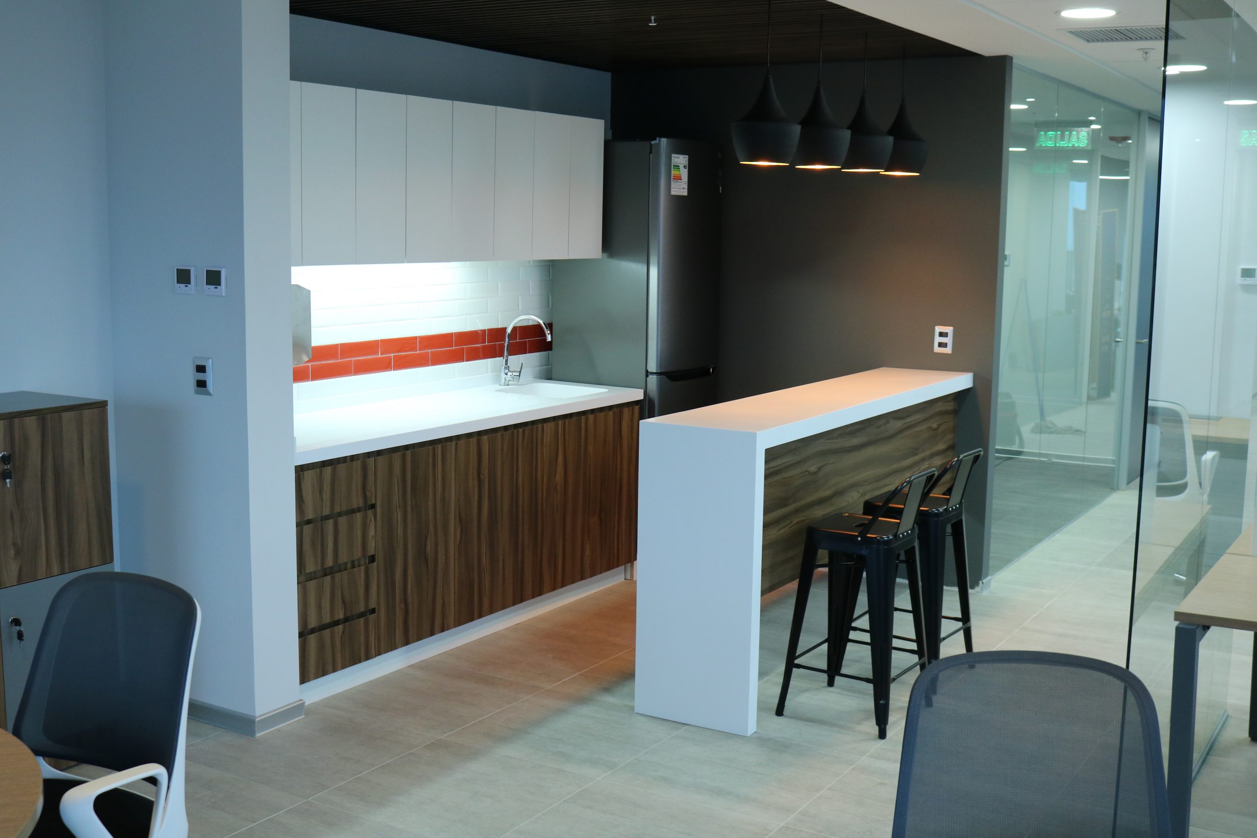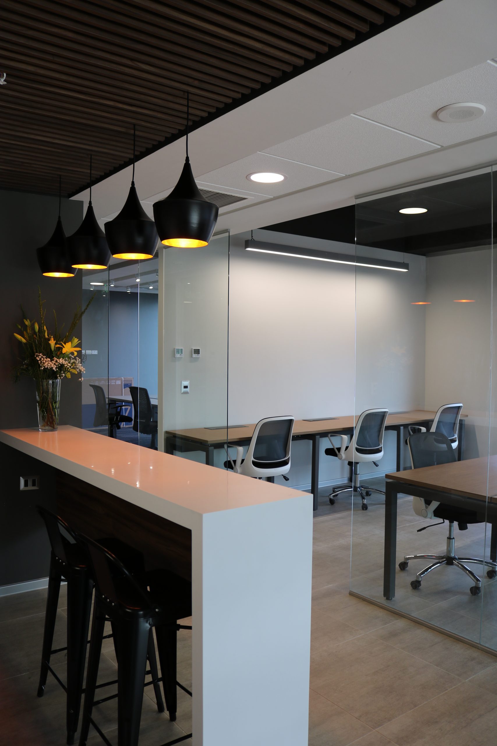 La habilitación de planta libre de VANTAZ, fue un desafio en terminos de albergar una cantidad de puestos de trabajos en espacio abierto, un miz de salas de reunión, y un importante espacio de trabajo colaborativo, abierto, y multipropósito. Como solicitado, dentro del presupuesto, se le dió mayor valor agregado a la sala de reuniones prinicipal, asi como el espacio abierto que albergaba el coffee. La implementación fue muy valorada por el uso espacial y el apego al presupuesto del proyecto.