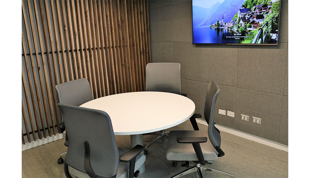 Uno de los principales aspectos a cuidar en el mismo fue el tema acústico, por lo que el proyecto contemplo vidrios con insonorización especial, puertas vidriadas con sellos, paneles acústicos de sobre muro y bandas de goma de alta densidad dentro de los tabiques entre otros.